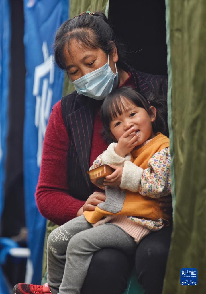 9月10日,在四川省瀘定縣磨西鎮安置點,一名小朋友在吃月餅。當日是中秋節,工作人員為受災群眾和救援人員發放月餅,共度節日。