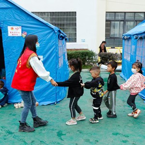 32歲的羅蓮是四川省甘孜州瀘定縣冷磧鎮幼兒園的一名老師?!?·5”瀘定地震發生后,她于第二天自發來到瀘定縣第二中學校災后臨時安置點做志愿者,為安置在這里的數百名來自重災區得妥鎮的群眾服務。這些易地安置的群眾包括約50名不同年齡段的孩子,羅蓮與其他幾名同樣是老師的志愿者一起,利用三頂安置帳篷開設了“帳篷課堂”,帶領孩子們畫畫、閱讀、做游戲、做手工等,細心照料、陪伴著這些經歷了地震傷痛的孩子。