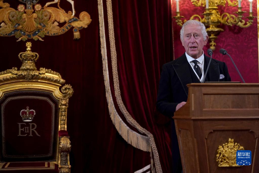 英國登基委員會10日在位于倫敦的圣詹姆斯宮正式宣告查爾斯三世為英國君主。這是查爾斯三世在儀式上。新華社/美聯