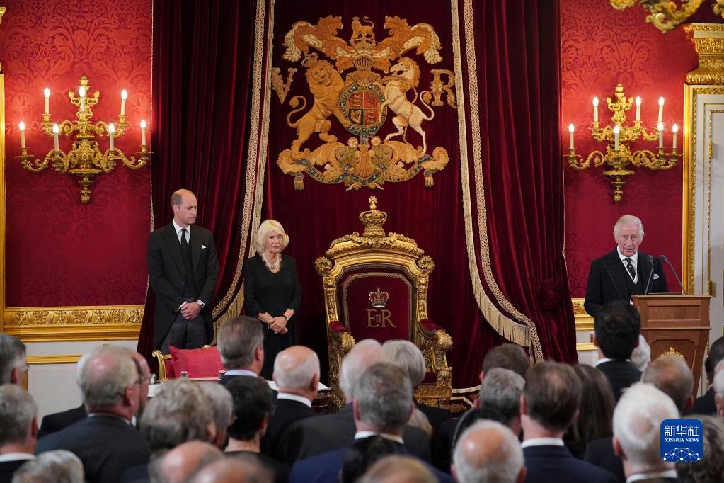 英國登基委員會10日在位于倫敦的圣詹姆斯宮正式宣告查爾斯三世為英國君主。這是查爾斯三世(右)在儀式上。新華社/美聯