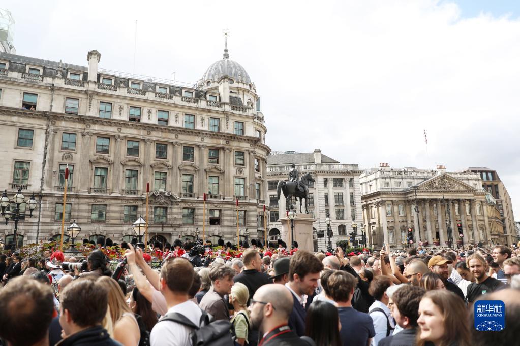 英國登基委員會9月10日在位于倫敦的圣詹姆斯宮正式宣告查爾斯三世為英國君主。這是民眾在英國倫敦金融城的皇家交易所觀看相關公告的宣讀儀式。