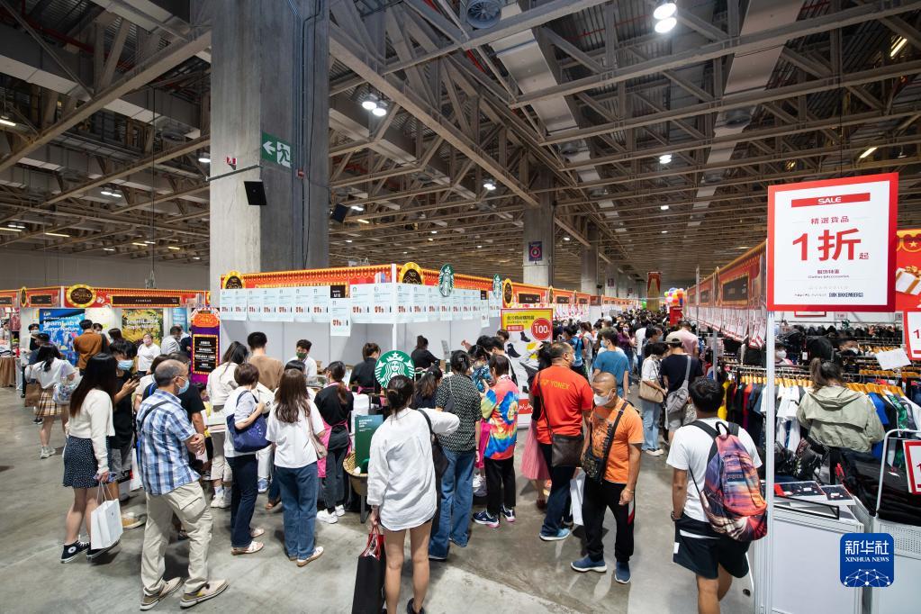 9月10日,人們在澳門年度大規模消費折扣展上選購商品。新華社記者 張金加 攝
