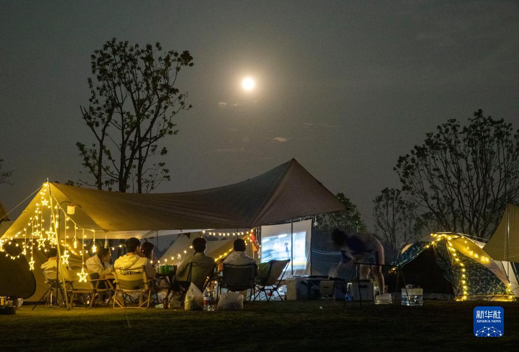 9月10日晚,游客在重慶市南川區黎香湖星空露營基地露營。中秋假期期間,人們以各種各樣的方式走出戶外,親近自然,樂享假日。新華社發(瞿明斌 攝)