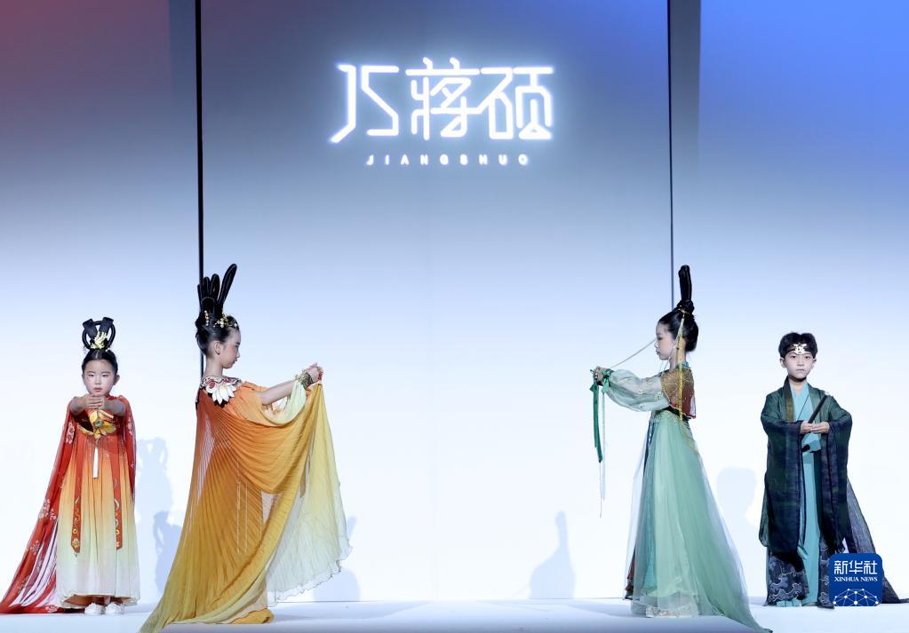 9月11日,模特在在北京中國國際時裝周(2023春夏系列)舉行的“JS·蔣碩”童裝發布會上展示設計師蔣碩設計的童裝。