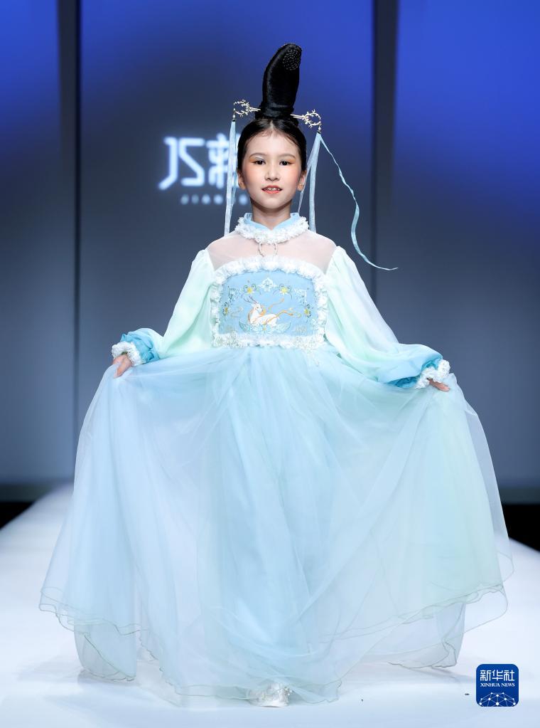 9月11日,模特在在北京中國國際時裝周(2023春夏系列)舉行的“JS·蔣碩”童裝發布會上展示設計師蔣碩設計的童裝。