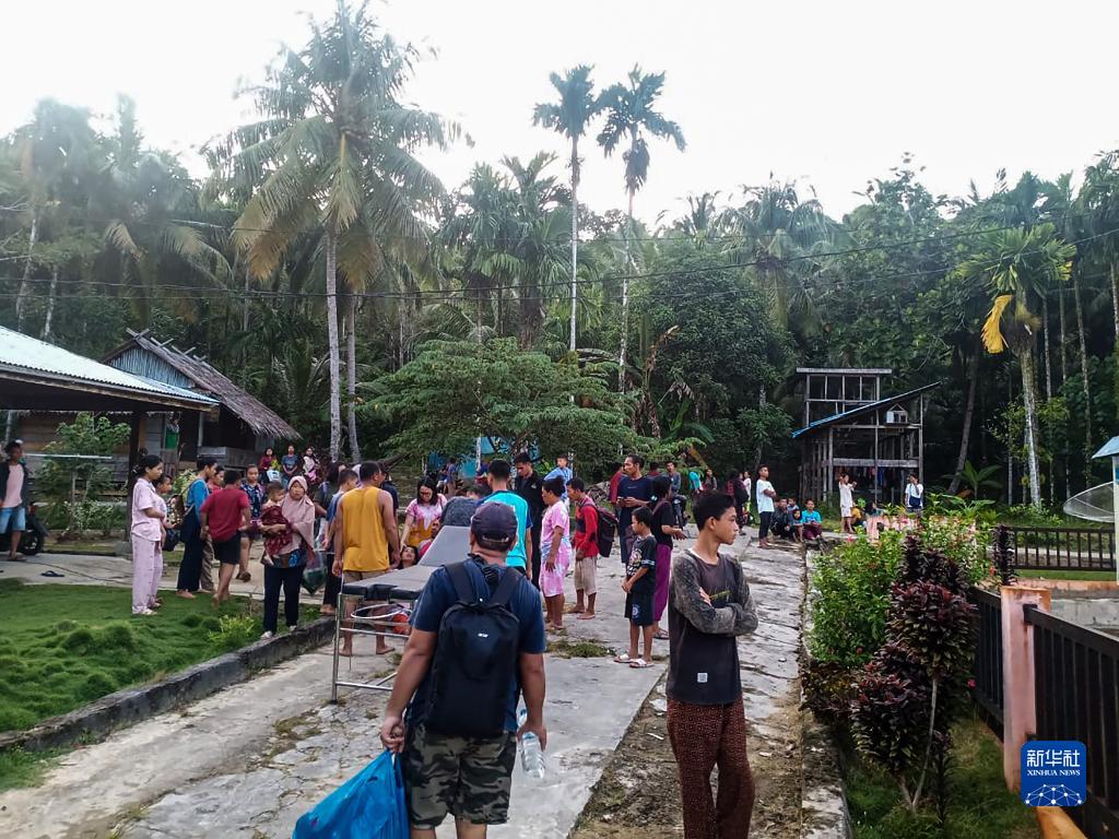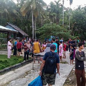 9月11日,人們站在印尼西蘇門答臘省明打威群島一處醫療機構外(手機拍攝)。