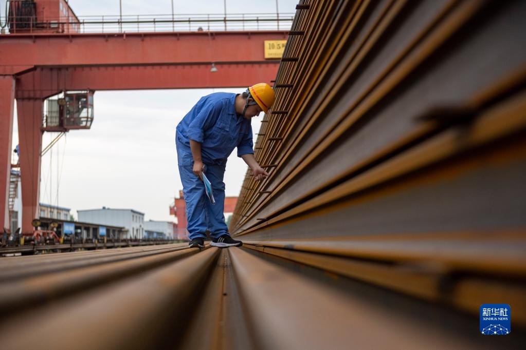 羅宇航在鄭州工務機械段焊軌車間檢查鋼軌母材(9月9日攝)。