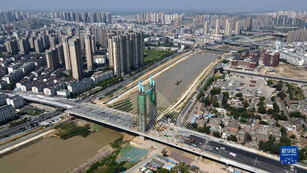 建設施工中的中鐵四局引江濟淮工程江淮溝通段青龍橋項目現場(9月11日攝,無人機照片)。新華社記者 劉軍喜 攝