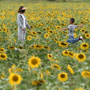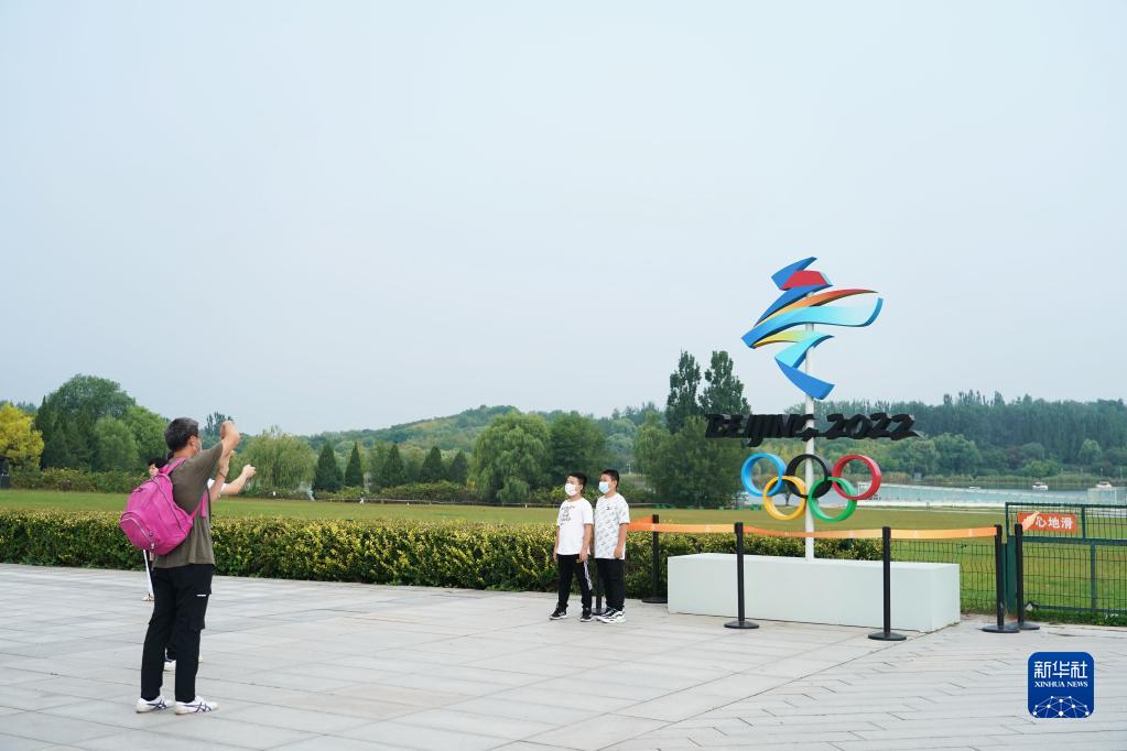 9月11日,游客在北京奧林匹克森林公園南園拍照留念。