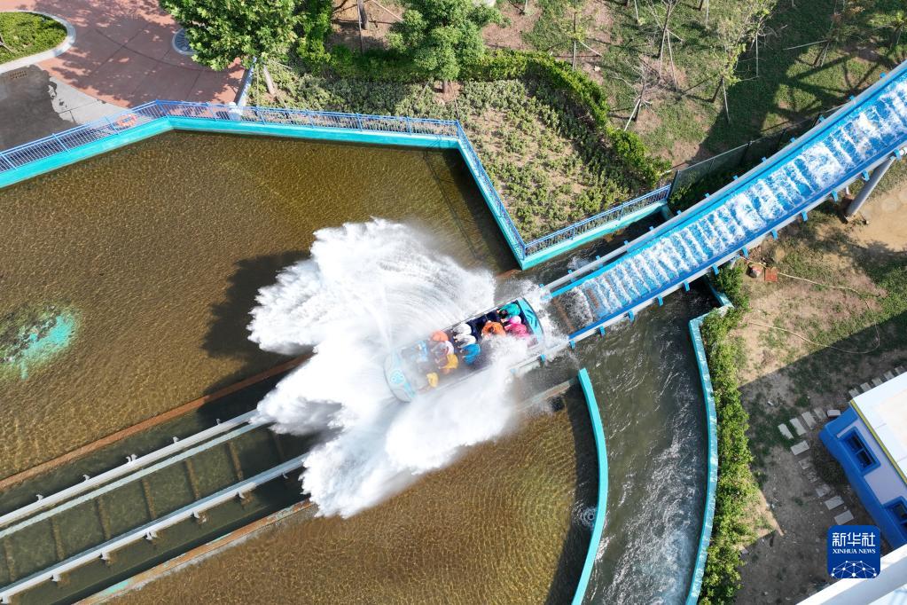 9月11日,游客在江蘇淮安方特東方欲曉游玩(無人機照片)。