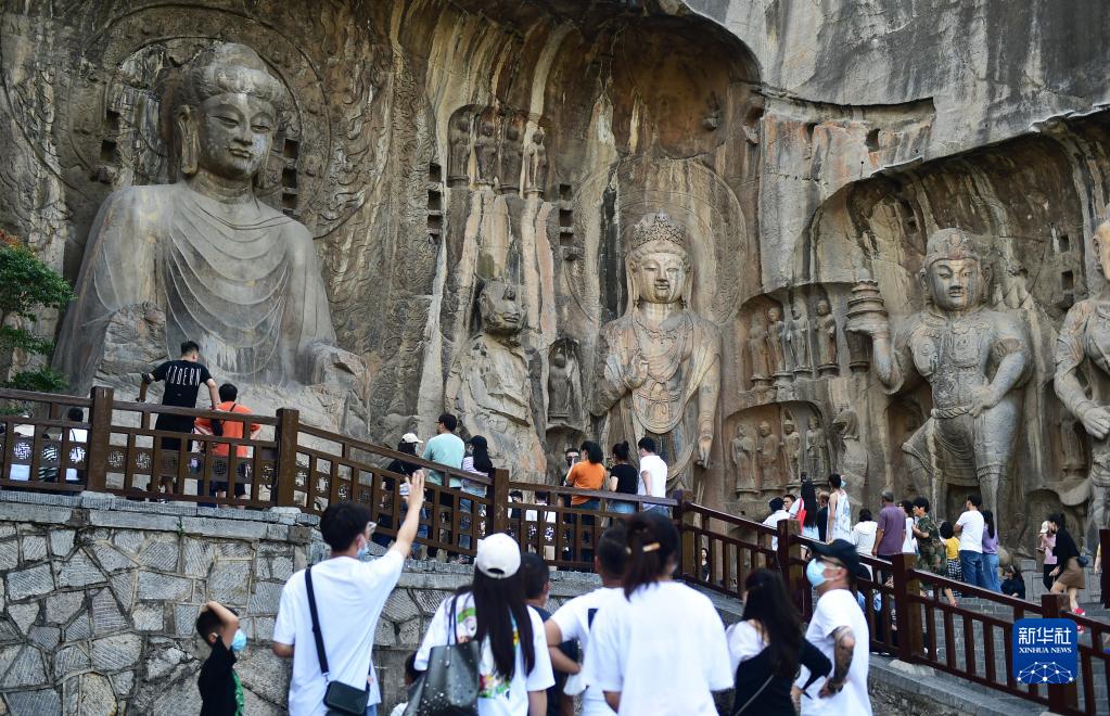 9月11日,游客在河南省洛陽市龍門石窟景區參觀游覽。
