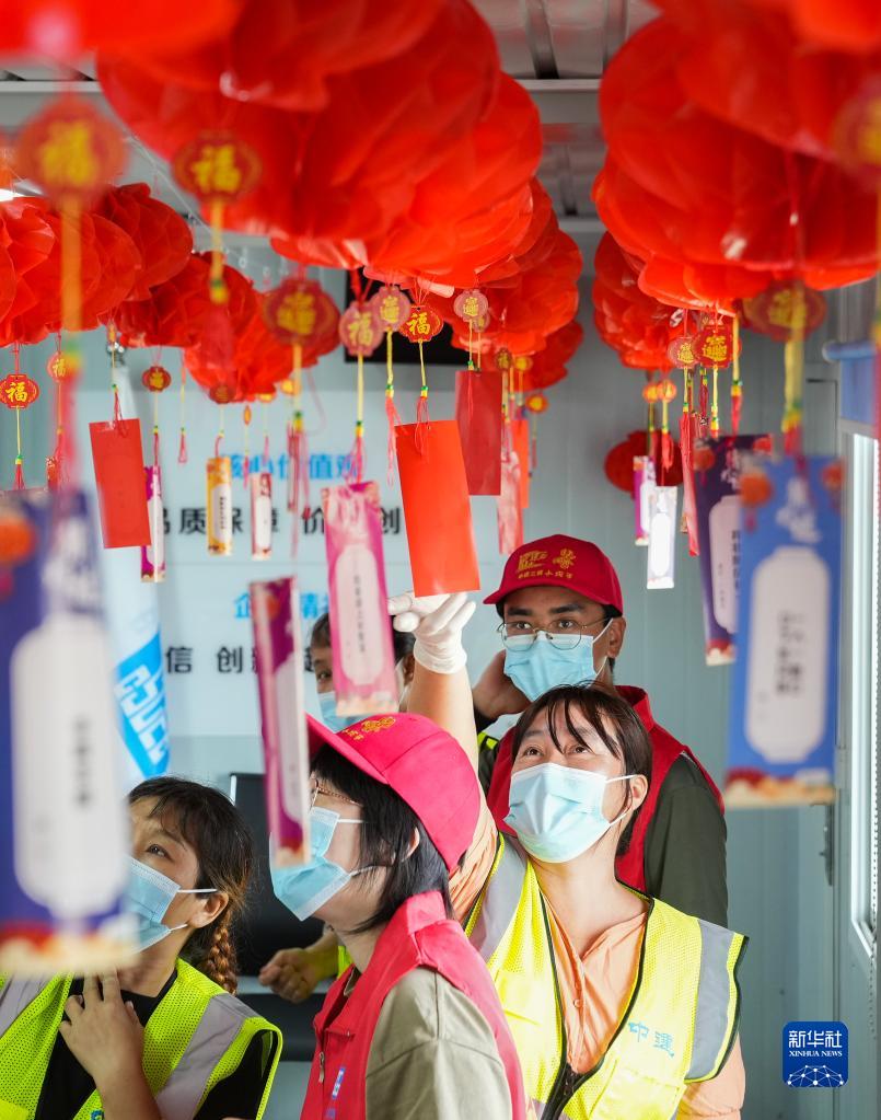9月11日,建設者在中建三局華東公司上海分公司君實生物項目部開展的“工地慶中秋 佳節情意濃”主題活動上猜燈謎。