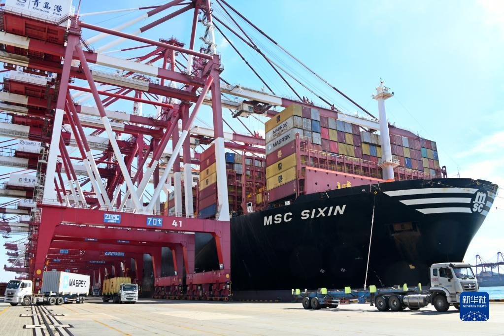 “地中海思辛”輪創青島港今年單船最大作業量(9月10日攝)。
