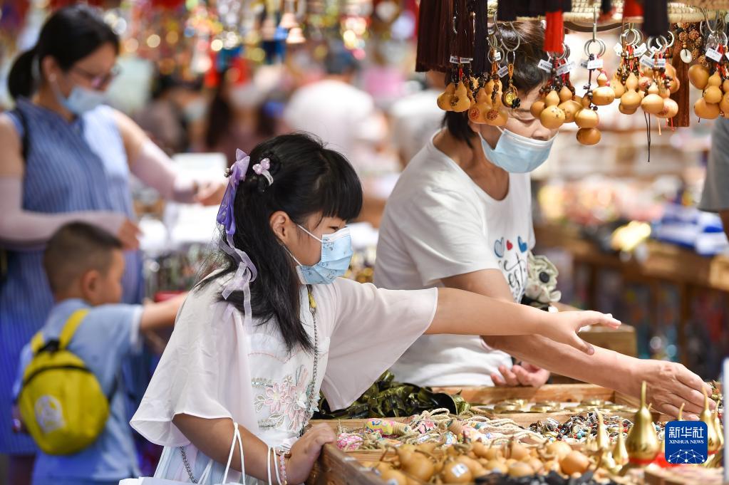 9月11日,小朋友在江蘇省南京市夫子廟景區選購旅游紀念品。新華社發(方東旭 攝)