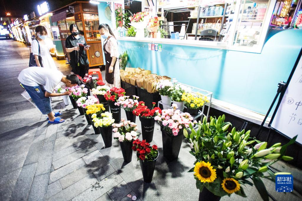 9月10日,市民在廣西南寧市興寧區吾悅廣場一家花店選購鮮花。新華社發(趙京武 攝)