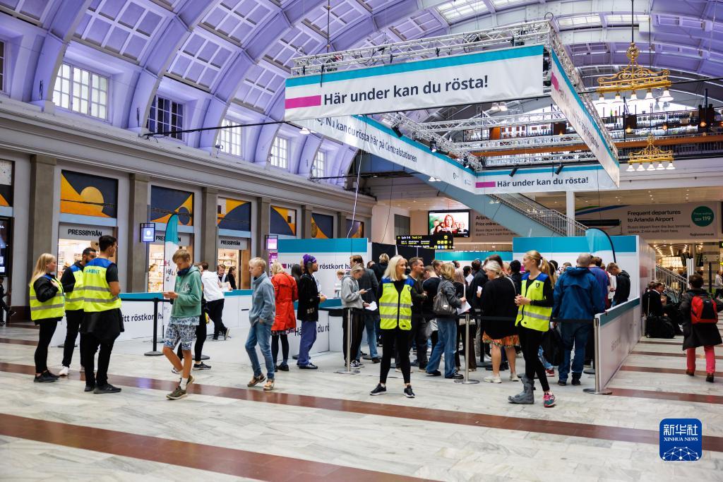 這是9月11日拍攝的位于瑞典斯德哥爾摩中心火車站內的投票站。