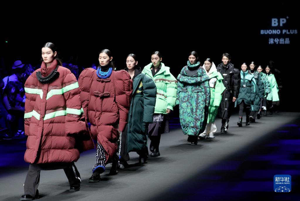 9月11日,模特在北京中國國際時裝周(2023春夏系列)舉行的“BUONO PLUS·姜佳”時裝發布會上展示設計師姜佳設計的羽絨系列服裝。