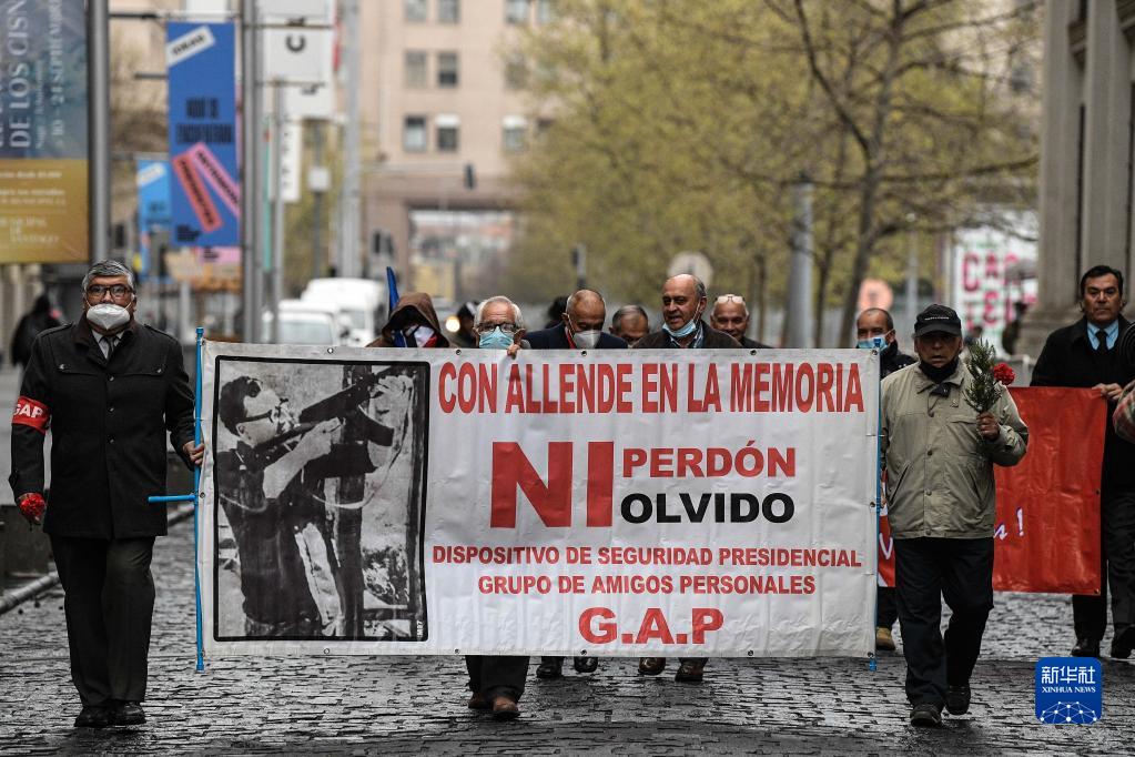 9月11日,智利民眾在首都圣地亞哥集會,紀念前總統阿連德遇難49周年。