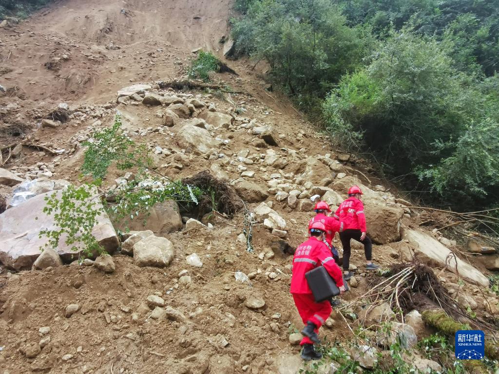 9月7日,四川省冶勘設計集團有限公司的調查隊員在海螺溝景區內進行地質災害應急排查工作。