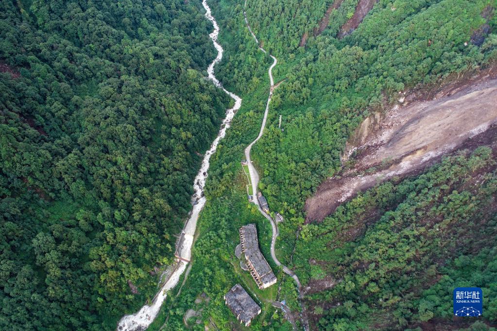 這是9月7日拍攝的海螺溝景區一號營地附近的崩塌災害現場(右側部分)(無人機照片)。