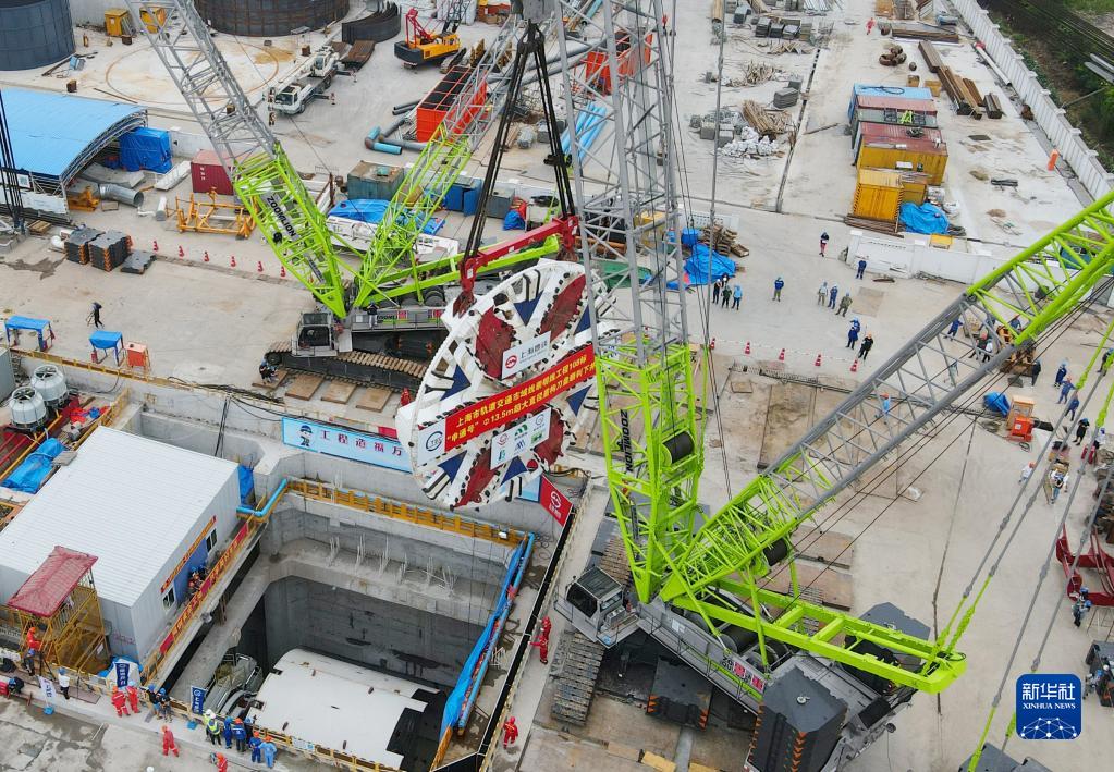 當日,在位于上海長興島的軌道交通崇明線108標施工現場,重達308噸的“申通號”盾構機刀盤吊裝下井作業順利完成?!吧晖ㄌ枴倍軜嫏C總長148米,當日完成吊裝下井的刀盤直徑13.5米,由一個中心塊、6個主刀臂和6個輔刀臂焊接拼裝組成?!吧晖ㄌ枴倍軜嫏C將完成崇明線南港越江段全長7.74千米的區間隧道掘進施工,這也將是上海軌道交通穿越長江的第一條隧道。