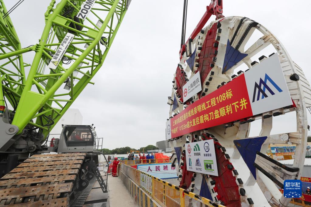 9月12日,一臺履帶式吊機在進行“申通號”盾構機刀盤吊裝下井作業施工。