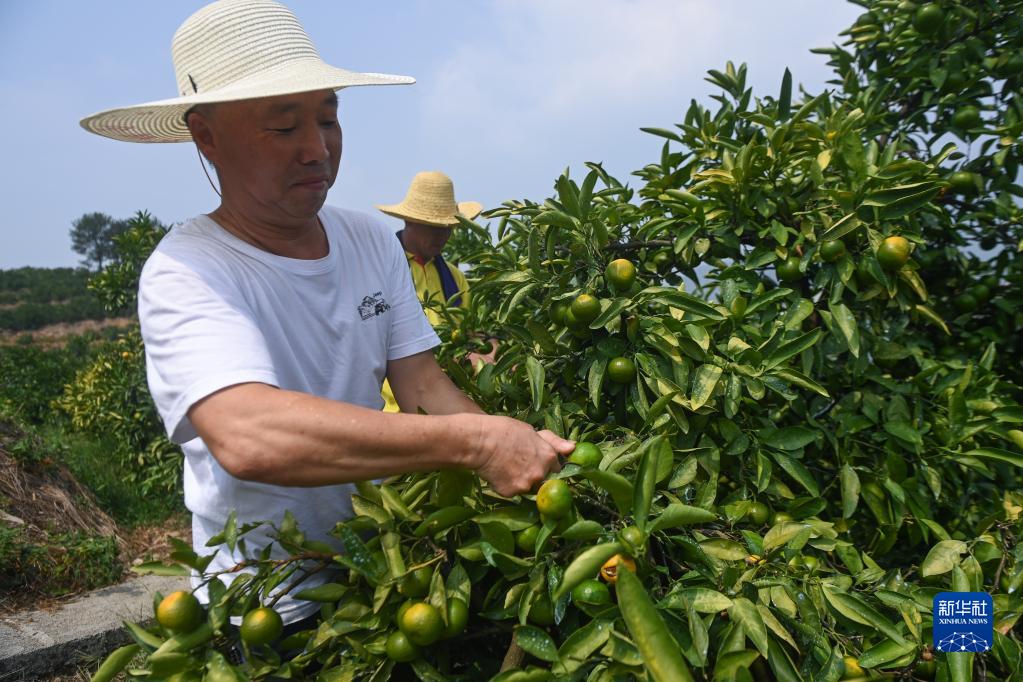 9月12日,在建德市三都鎮的松蜜果園里,果農采摘特早橘。
