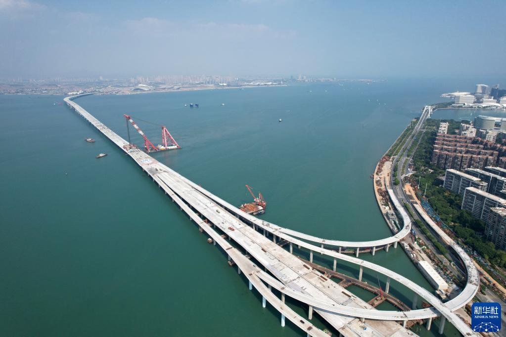9月12日拍攝的合龍后的廈門翔安大橋(無人機照片)。