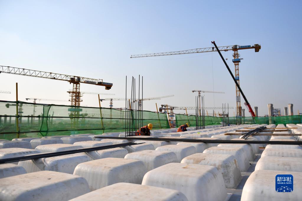 中秋假期期間,在長沙機場改擴建工程綜合交通樞紐工程項目現場,施工人員堅守崗位,保障工程進展順利。