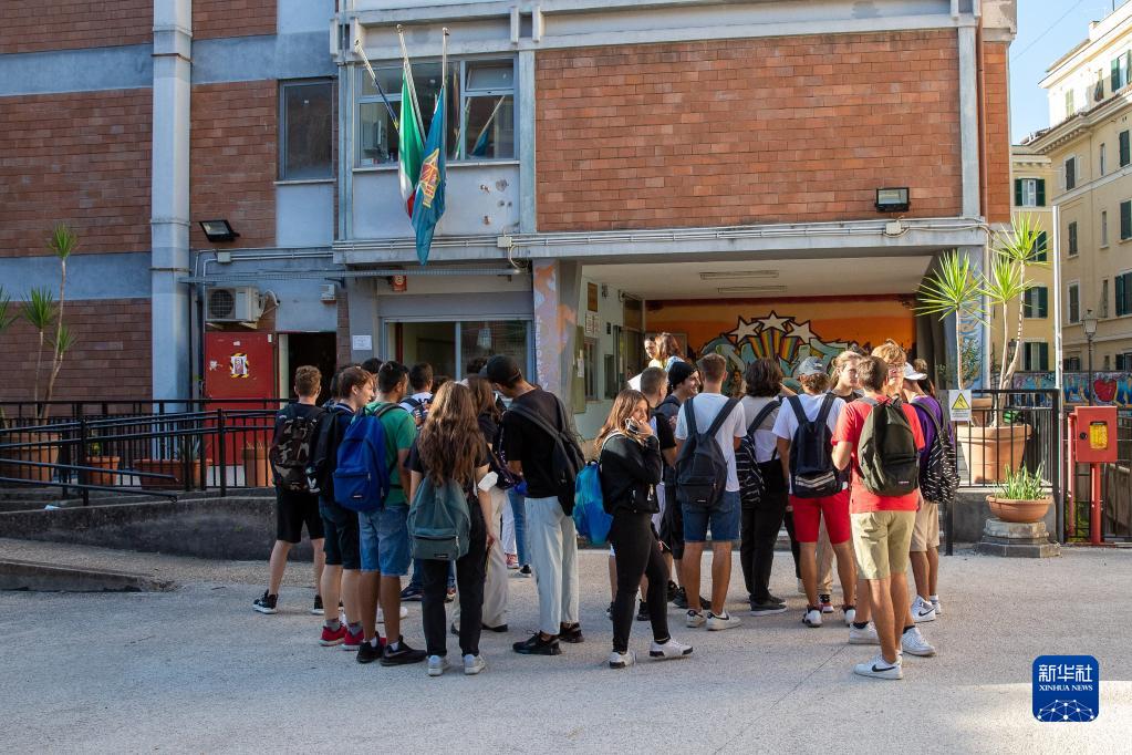 9月12日,意大利羅馬一所中學的學生準備進入教室。
