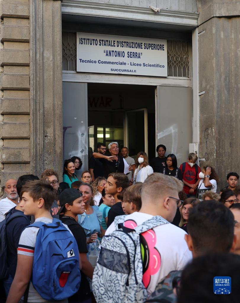9月12日,意大利那不勒斯一所中學的學生等待進入校園。