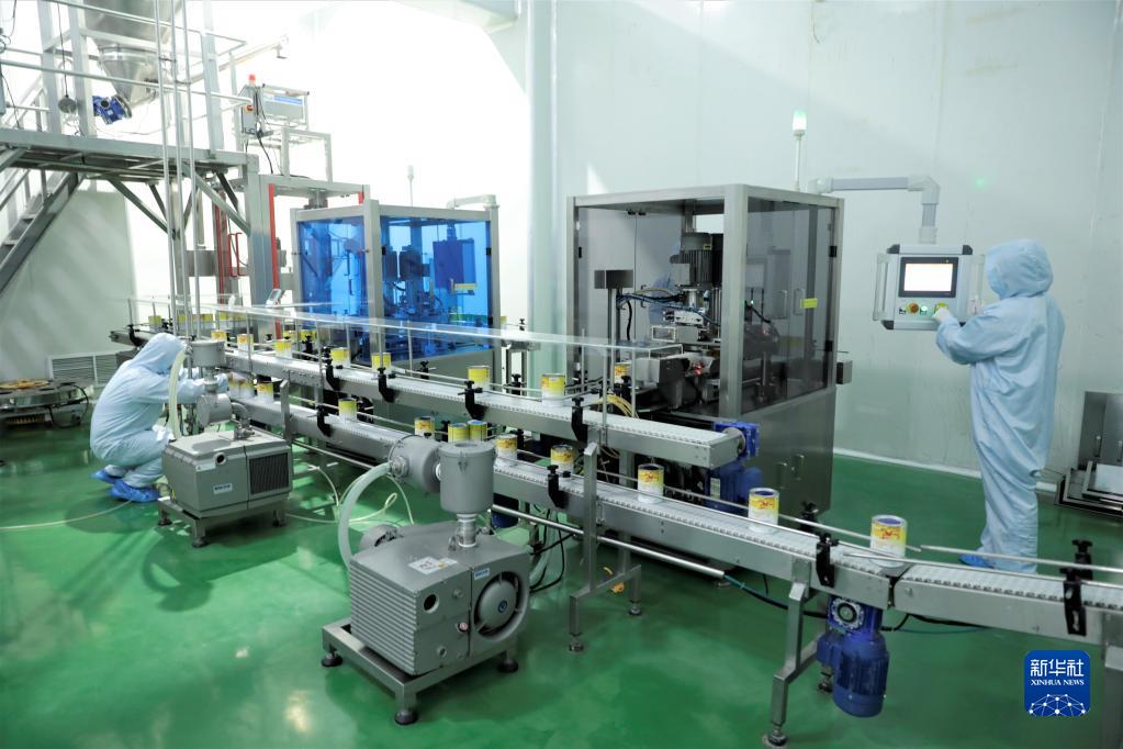 這是8月13日在哈薩克斯坦南部城市圖爾克斯坦拍攝的哈薩克斯坦金駱駝集團有限公司的駝乳粉加工廠。新華社發(奧斯帕諾夫 攝)