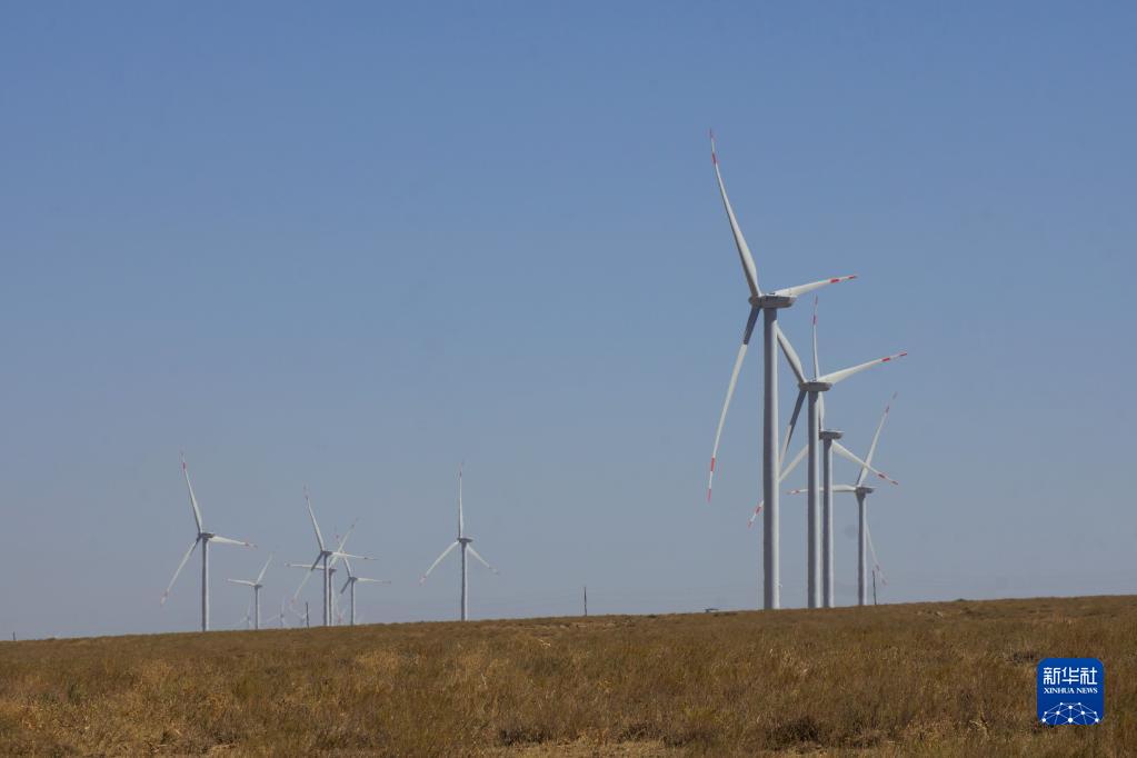 這是9月13日在哈薩克斯坦扎納塔斯拍攝的扎納塔斯風電場風機。新華社發(德米特里·瓦西連科 攝)