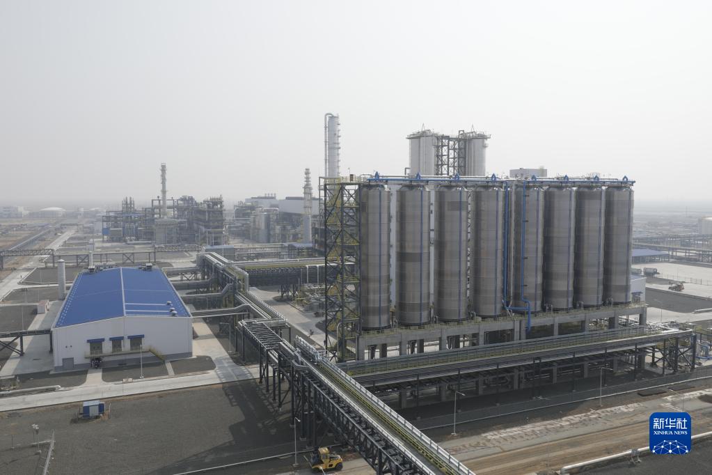 這是8月9日在哈薩克斯坦阿特勞州拍攝的由中國化學工程集團有限公司總包建設的哈薩克斯坦石油化工綜合體項目(無人機照片)。新華社發(奧斯帕諾夫 攝)