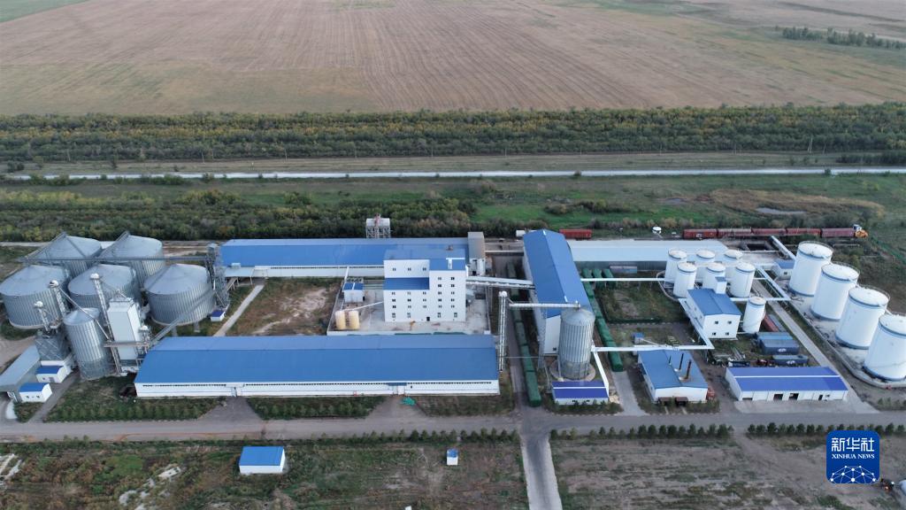 這是9月2日在哈薩克斯坦北哈薩克斯坦州拍攝的愛菊農產品物流加工園區(無人機照片)。新華社發(奧斯帕諾夫 攝)