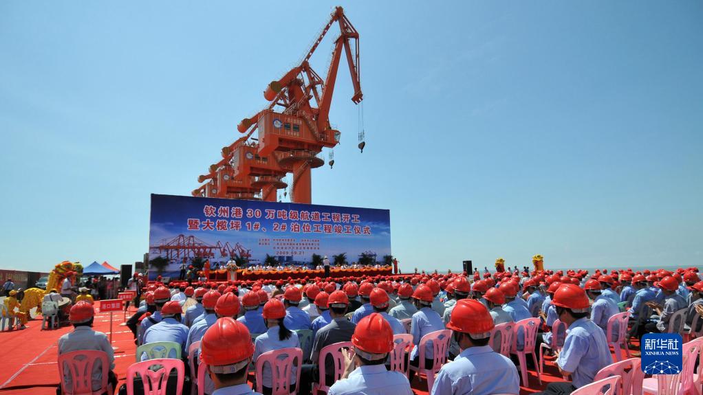 欽州港大欖坪1號和2號泊位竣工(2009年9月21日攝)。
