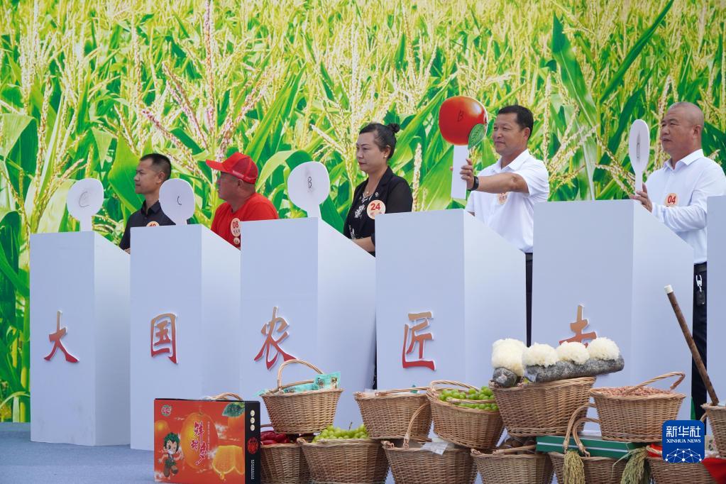 9月14日,選手在山東省樂陵市舉行的全國農民技能大賽(種植能手)上回答提問。