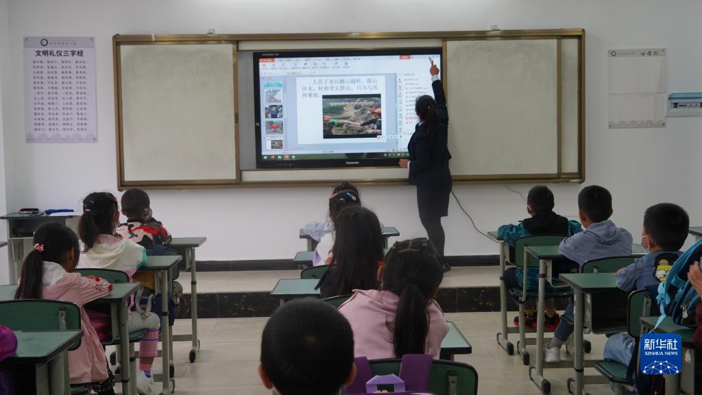 9月14日,老師在瀘定縣二郎山片區寄宿制學校給學生講述抗震救災情況。
