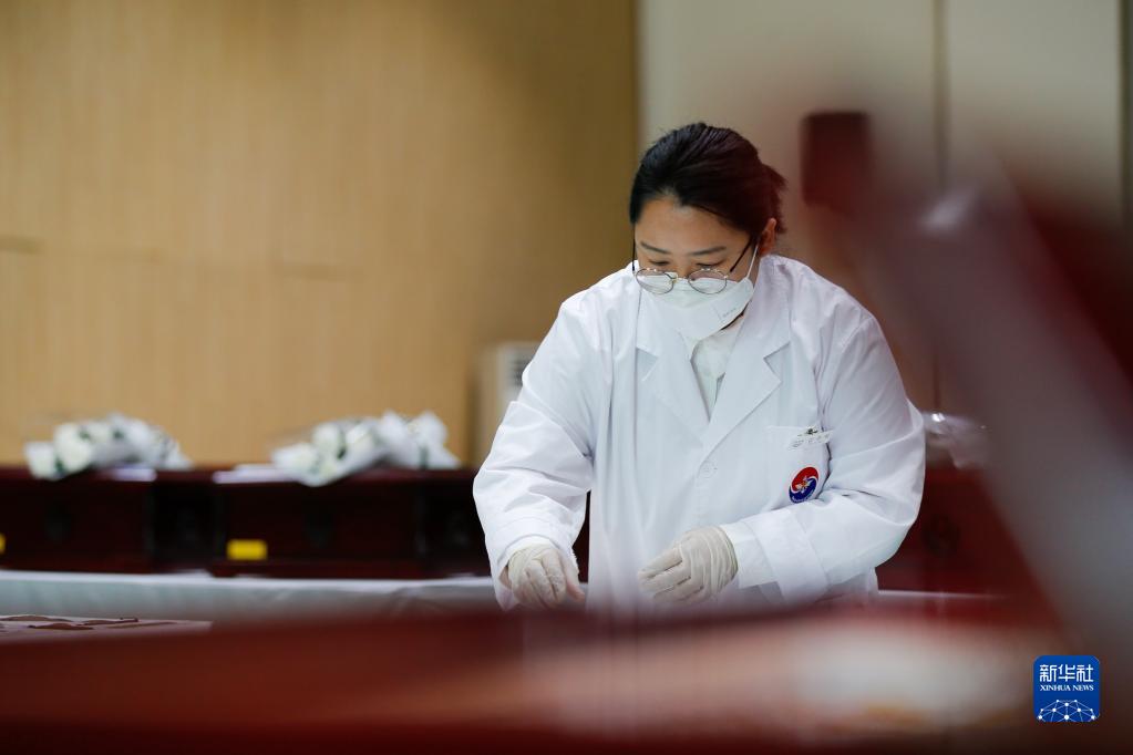 9月15日,在韓國仁川,韓方工作人員將志愿軍烈士遺骸入殮。
