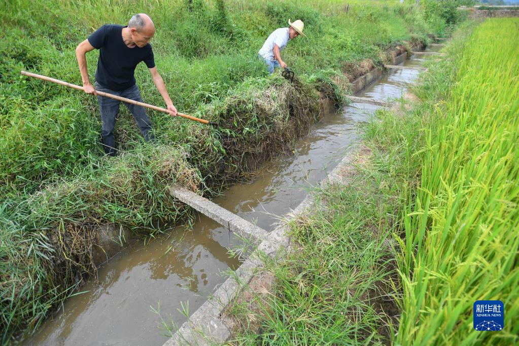 9月15日,在湘潭市雨湖區姜畬鎮聯映村,村民在疏浚灌渠。
