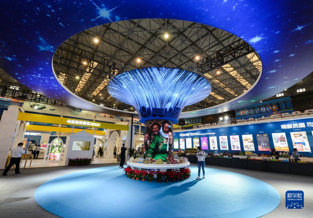 9月15日,參觀者在農業科技與糧食安全國際交流合作展館了解特色商品。