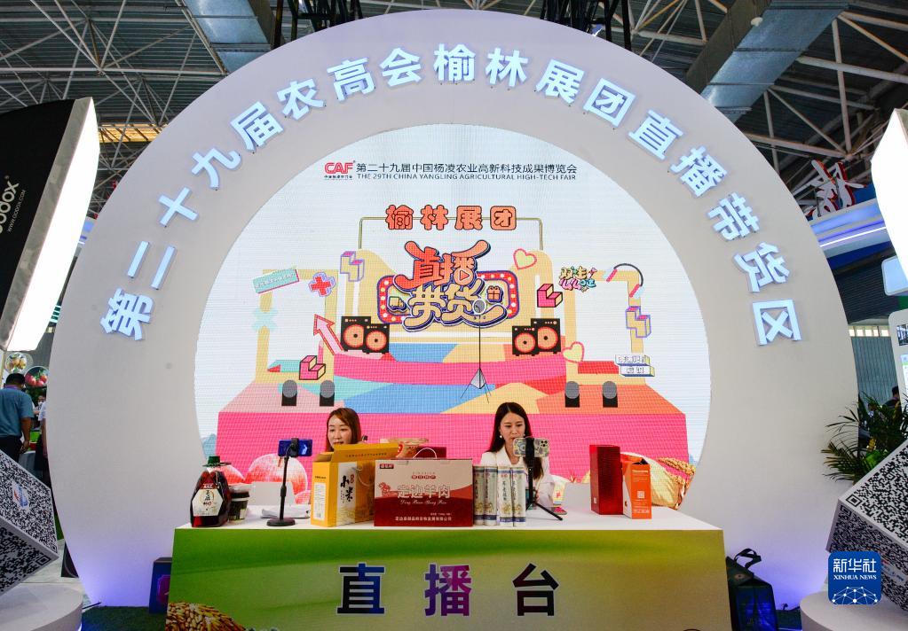 9月15日,在農業科技示范推廣應用展館榆林展區,主播在介紹特色農產品。