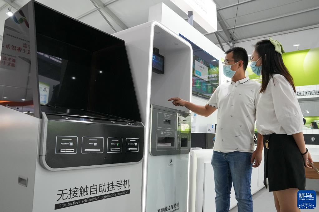 9月15日,在2022年全國大眾創業萬眾創新活動周合肥主會場的主題展區中,參展人員體驗安徽東超科技有限公司研發的運用空氣成像技術的非接觸式自助機。