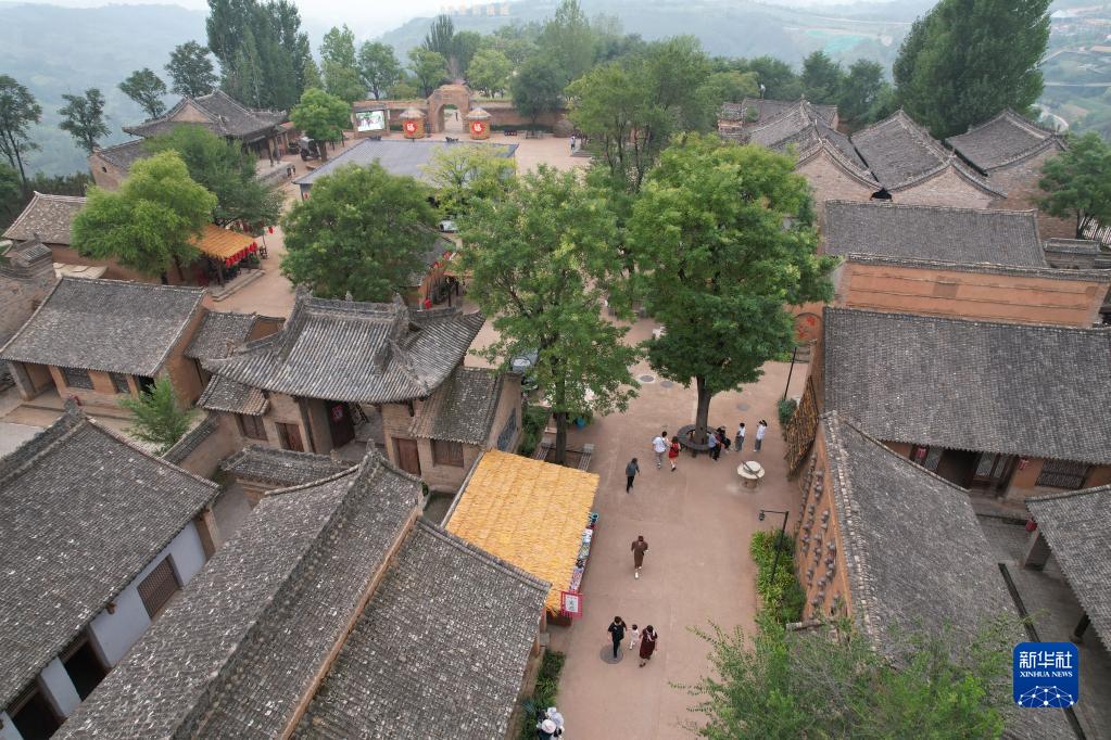 9月14日,游客在白鹿原影視城內游覽(無人機照片)。