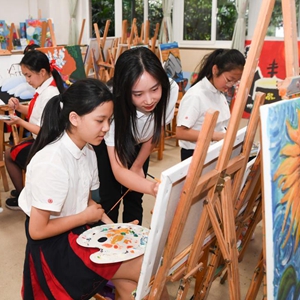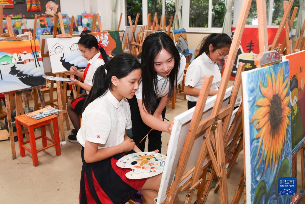 9月14日,重慶謝家灣學校學生在練習繪畫。