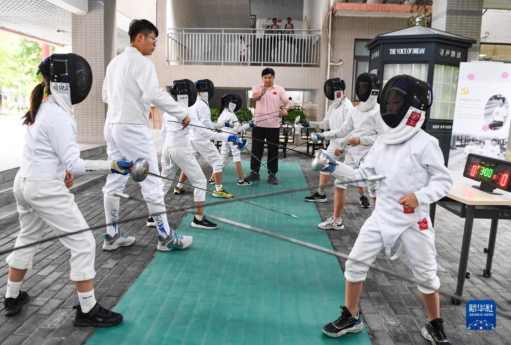 9月14日,重慶謝家灣學校學生在老師的指導下練習擊劍。