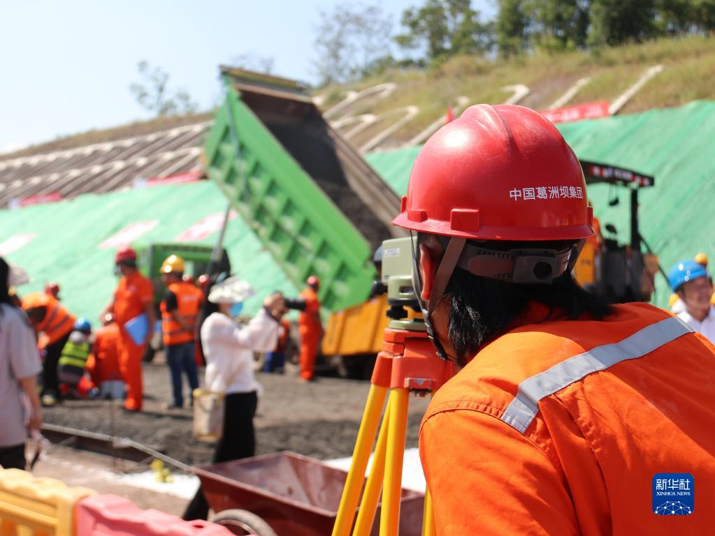 9月16日,來自中國能建葛洲壩路橋公司的建設者在武陽高速黃石段施工。