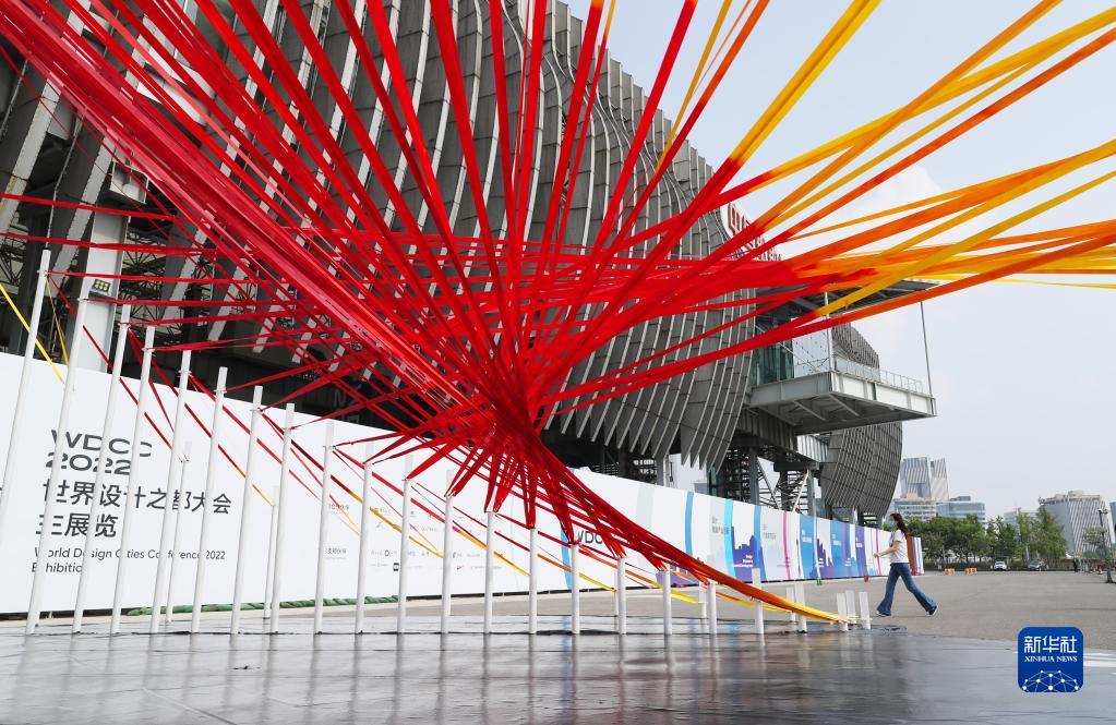 9月16日在大會主展區入口處拍攝的名為“設計敘事”的藝術裝置作品。