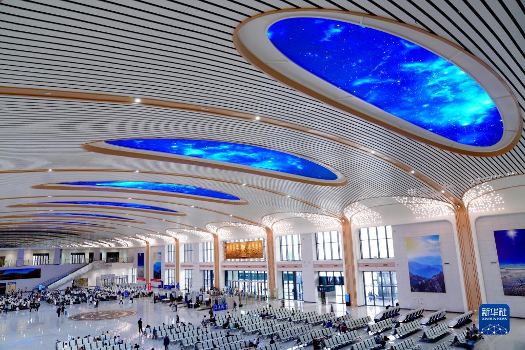 9月16日,旅客在新建淄博站南站房乘車出行。