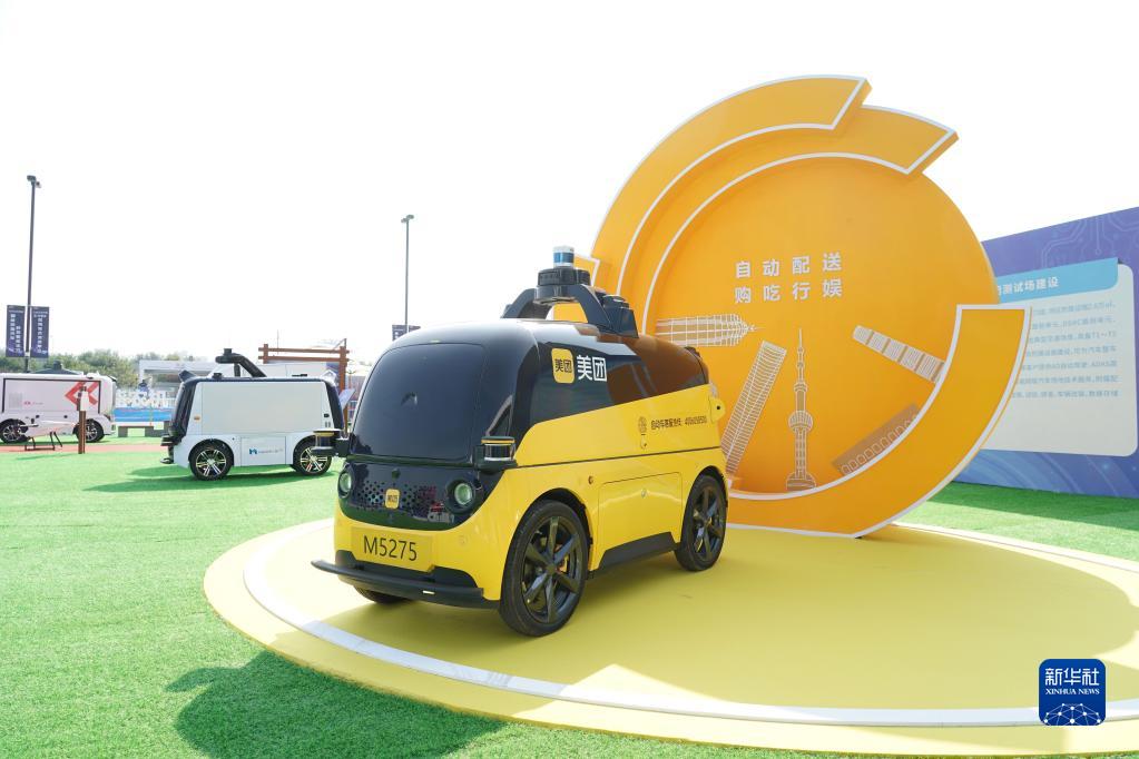 9月16日在2022世界智能網聯汽車大會室外展區拍攝的自動配送車。